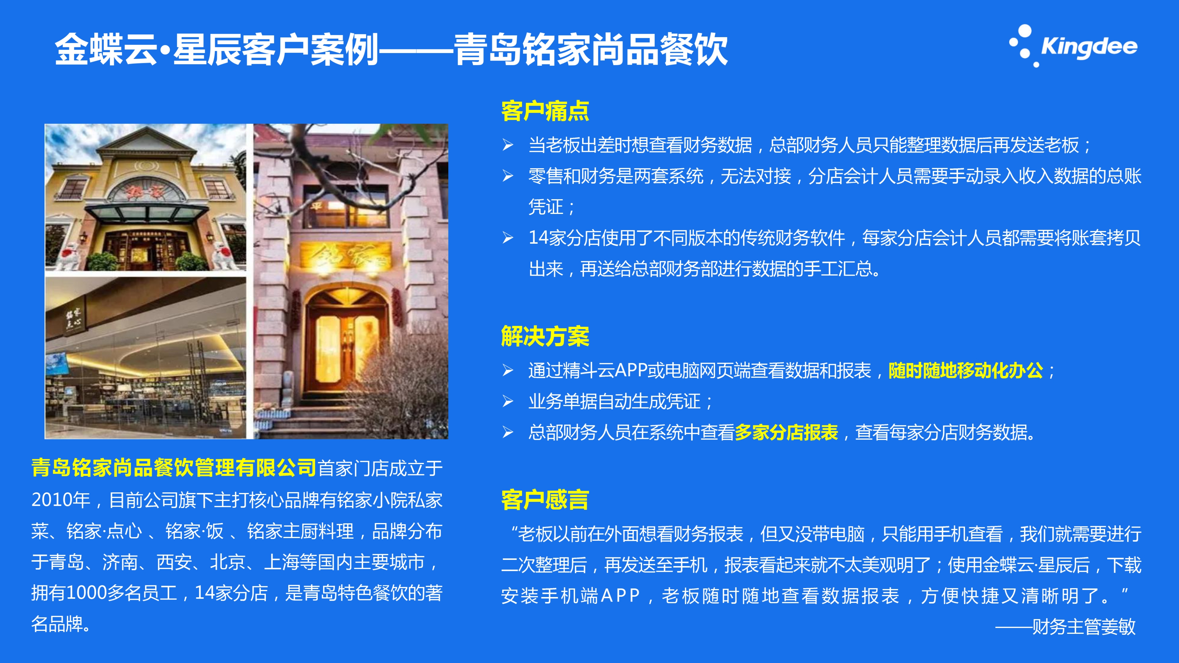 洛陽金蝶軟件,金蝶云·星辰客戶案例——青島銘家尚品餐飲
