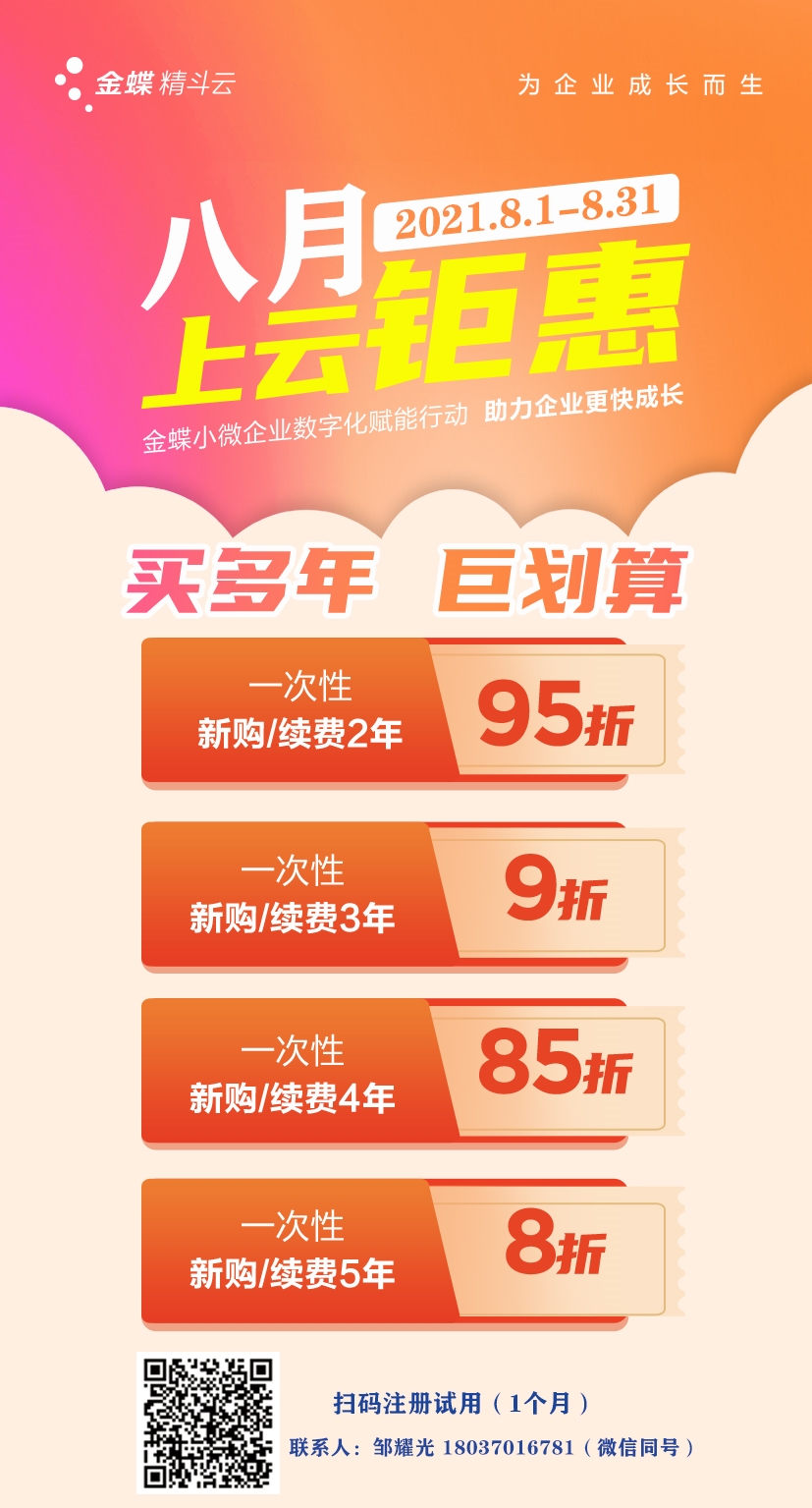 洛陽金蝶軟件-金蝶精斗云產品2021.8月促銷活動