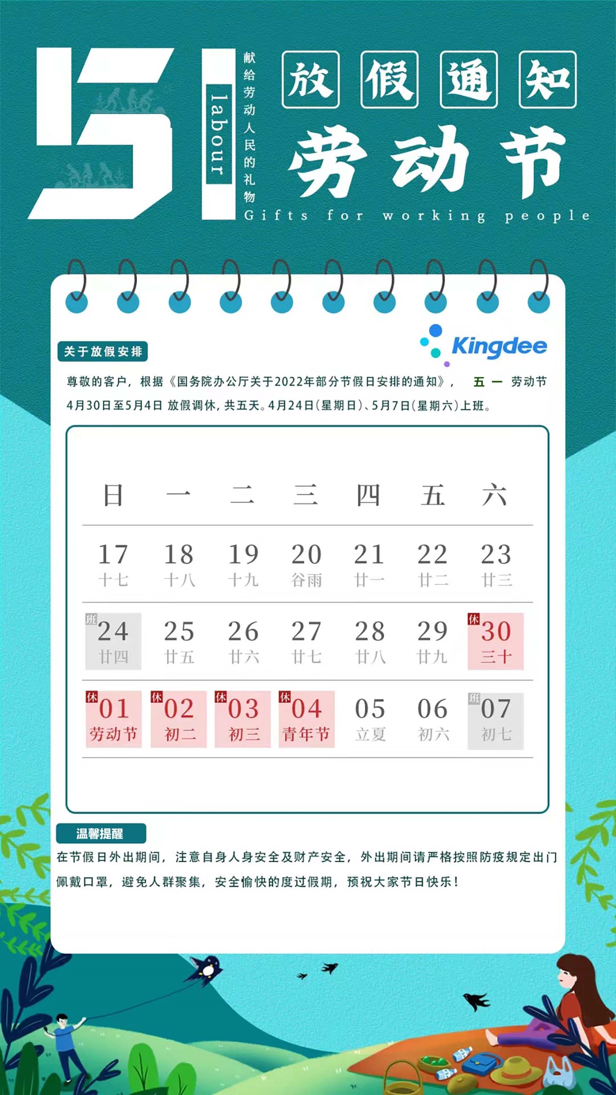 洛陽金蝶軟件2022年五一勞動節放假通知