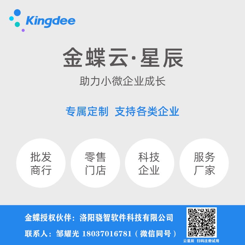 大家好這里是“洛陽金蝶軟件”-“洛陽驍智軟件科技有限公司”-金蝶公司洛陽本地授權金牌合作伙伴,主營:金蝶KIS云、精斗云、金蝶賬無憂、金蝶云星辰、金蝶云星空、金蝶云之家、金蝶配套憑證耗材、金蝶二次開發、洛陽金蝶軟件售服服務、洛陽金蝶軟件免費培訓等金蝶業務,詳情咨詢海報聯系電話、微信二維碼。