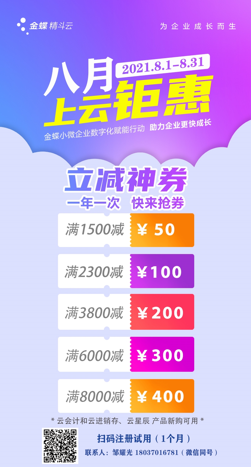 洛陽金蝶軟件,洛陽財務軟件,2021.8月金蝶精斗云促銷活動介紹: