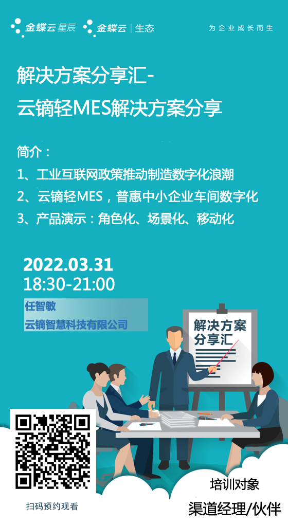 2022.3.31傍晚,洛陽金蝶軟件 金牌授權(quán)伙伴 洛陽驍智軟件科技有限公司 組織金蝶員工線上學(xué)習(xí)解決方案分享匯-云鏑生產(chǎn)報工解決方案分享