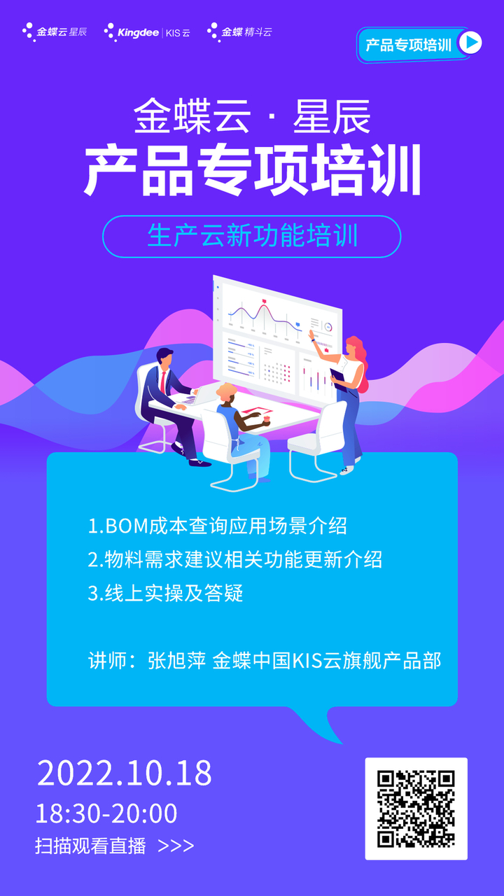 本期課程:生產云新功能培訓——BOM成本查詢、物料需求建議選任務單計算等新功能場景介紹及演示