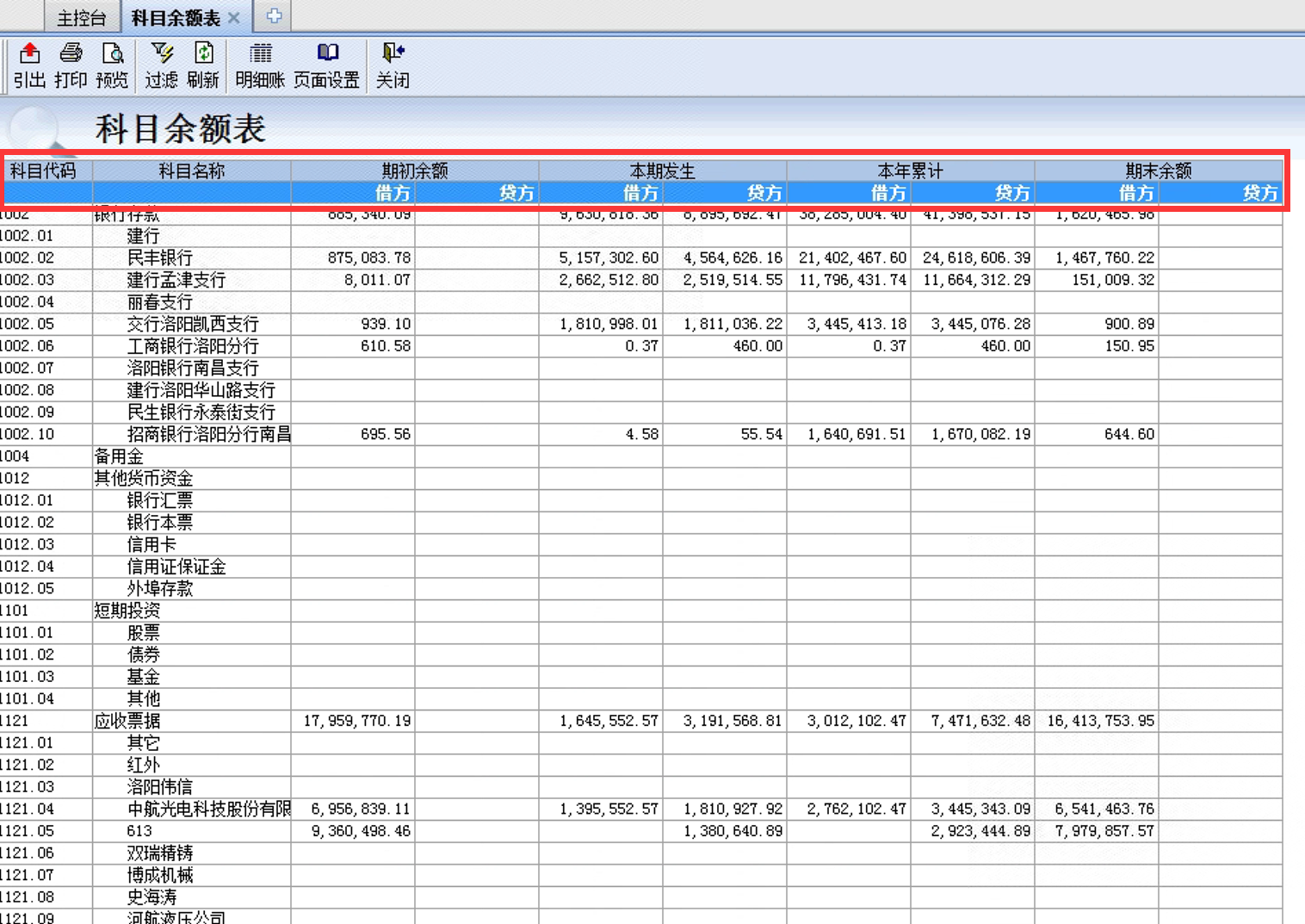 洛陽金蝶軟件 2023.4.22 金蝶KIS軟件:科目余額表 、明細賬 借貸方 方向顯示錯位問題,數據顯示界面如下: