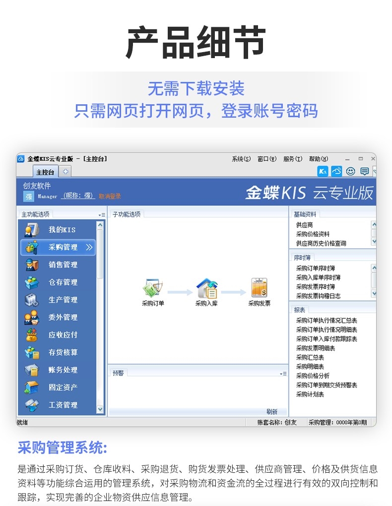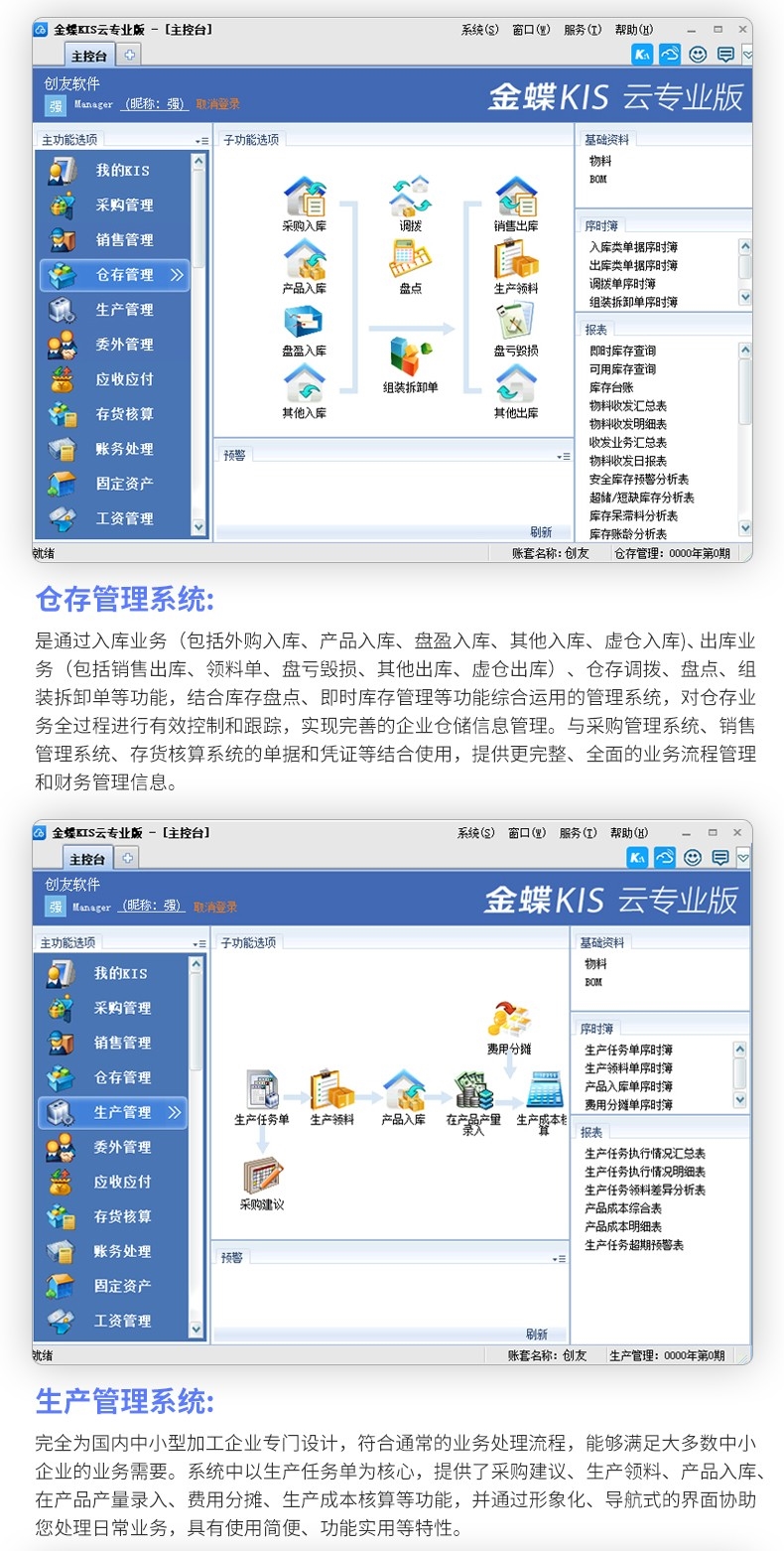 中小微企業 財務+倉庫進銷存+生產、委外管理、應收應付一體化管理軟件系統,使用簡單、便捷,選金蝶云“金蝶KIS云專業版”。