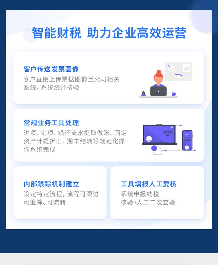 7.自定義工作流程: 工商、代賬服務流程管理分工明確、時間進度跟蹤;